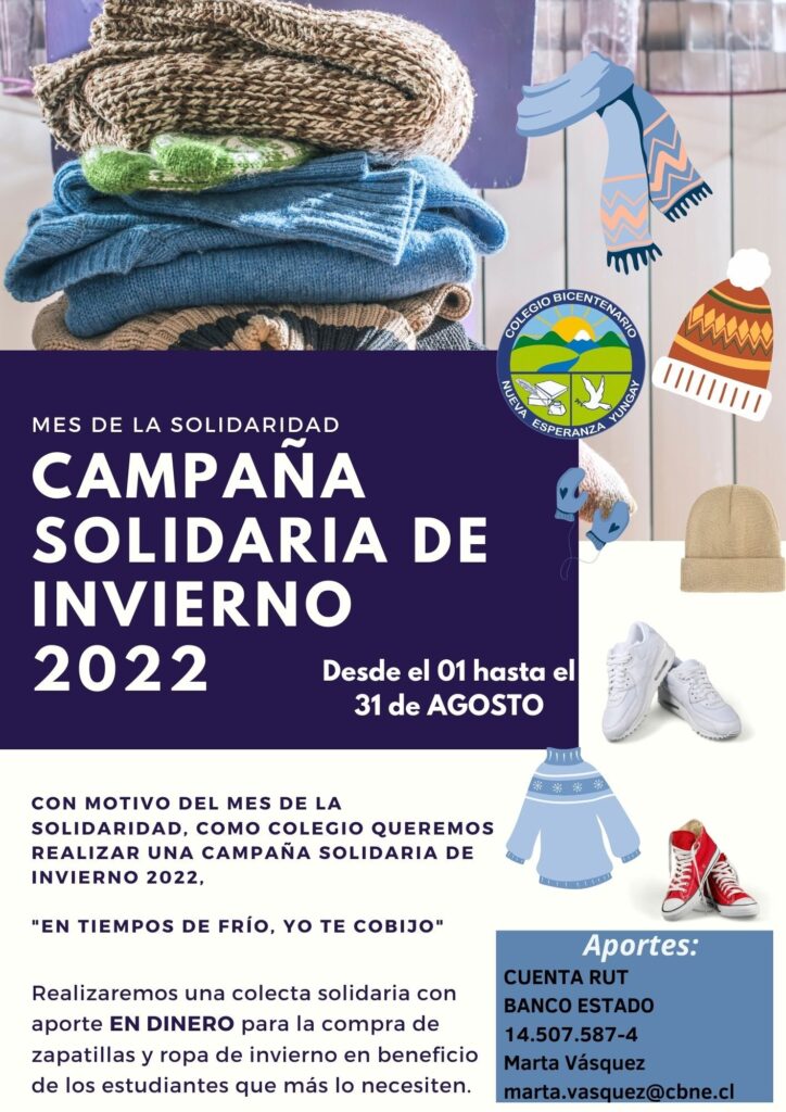 La campaña tendrá como fin ayudar con ropa de invierno a nuestros estudiantes, y para eso realizaremos una campaña solidaria con aporte en dinero a la siguiente cuenta: